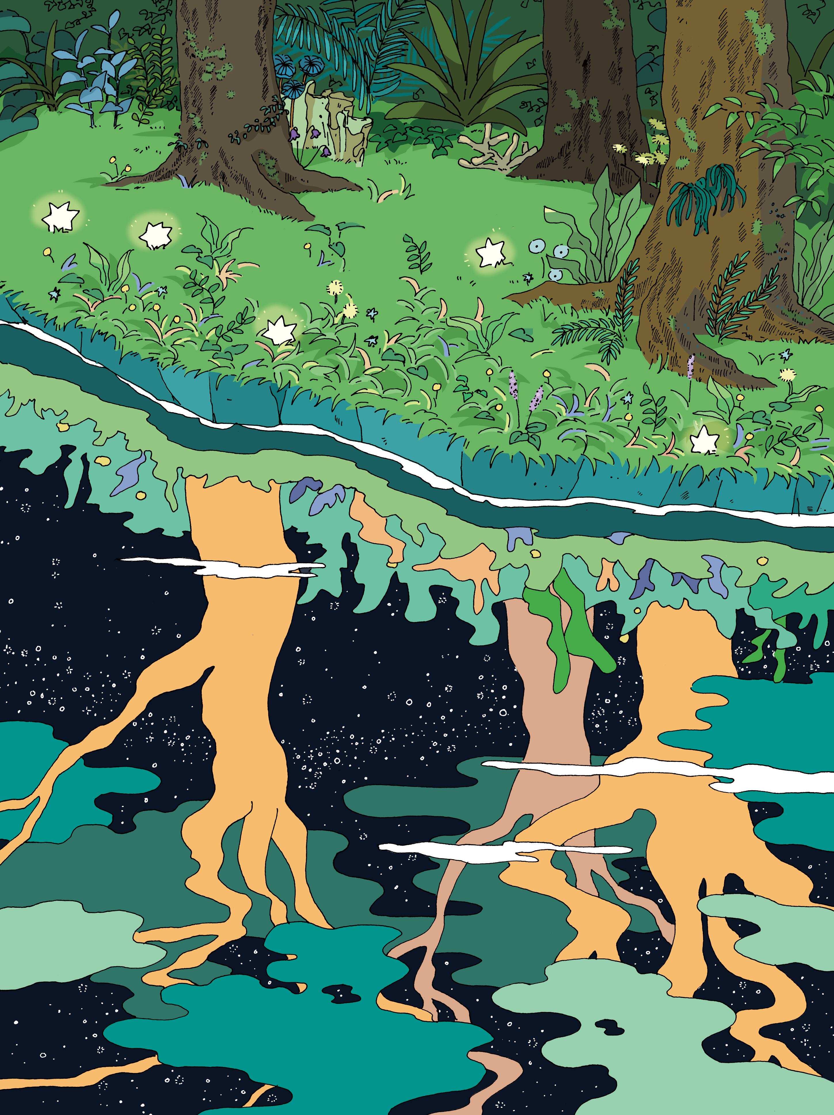 イラストレーター・カシワイさんの複製原画「みずうみ」。