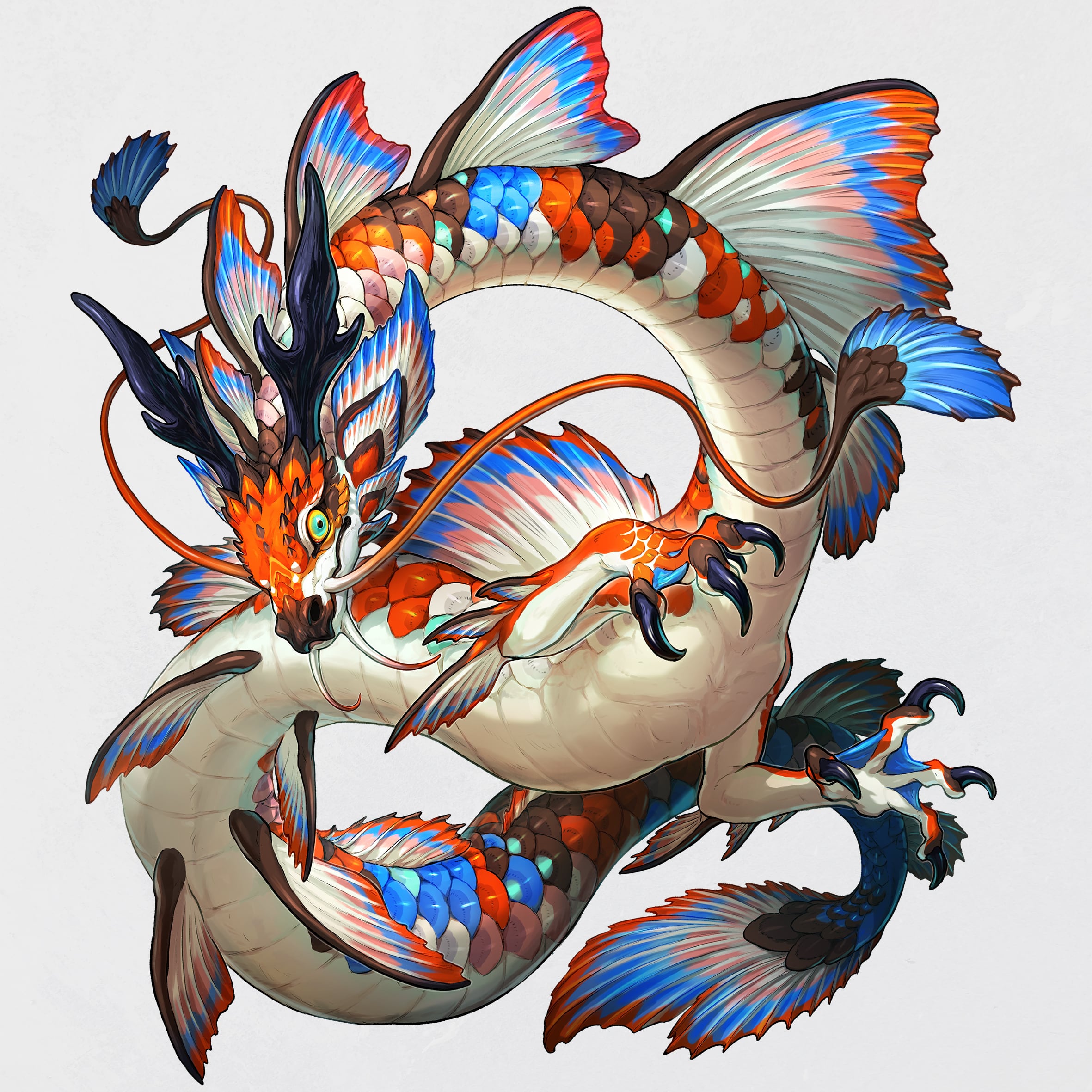 イラストレーター山村れぇさんの複製原画「Betta Dragon」。