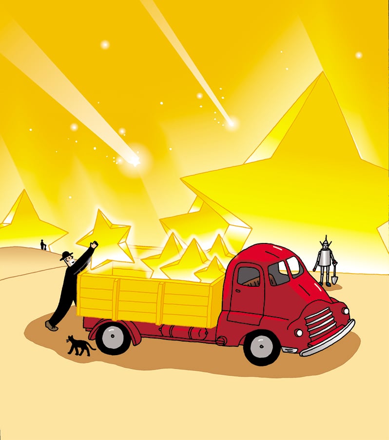 たむらしげるさんが教科書の表紙のために描いた「流星拾い」を複製原画にしました。